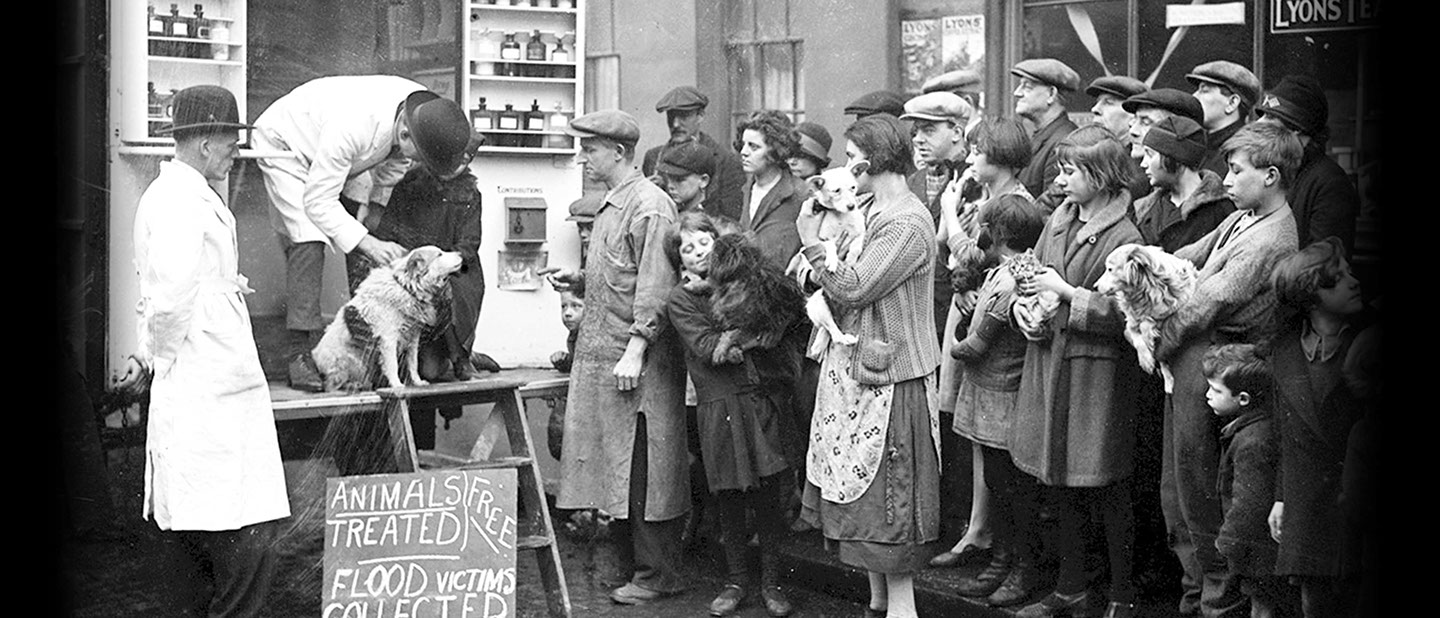 PDSA rallied to help animals in times of need. We rescued animals during WWII that were caught up in the blitz, provided food for sheep stranded during exceptionally severe snow storms in 1946 and providing emergency help for flood victims at Canvey Island in 1953.
